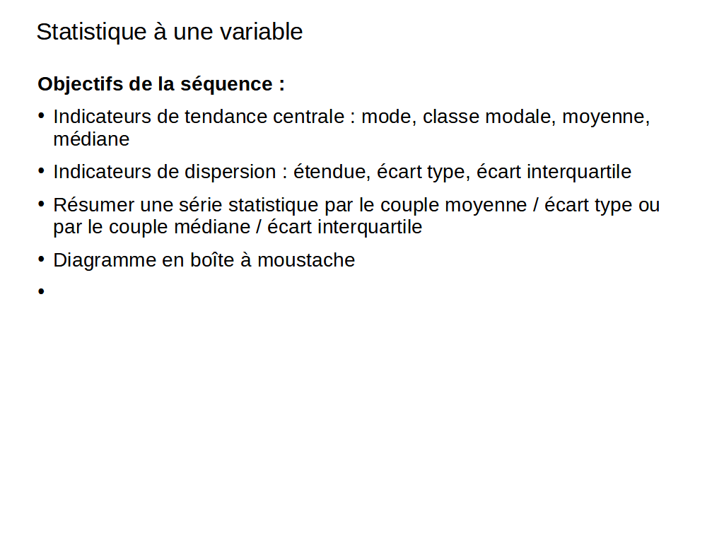 Nous nous limiterons pour ce cours à des suites statistiques à une variable – des séries de chiffres décrivant un type de données.
