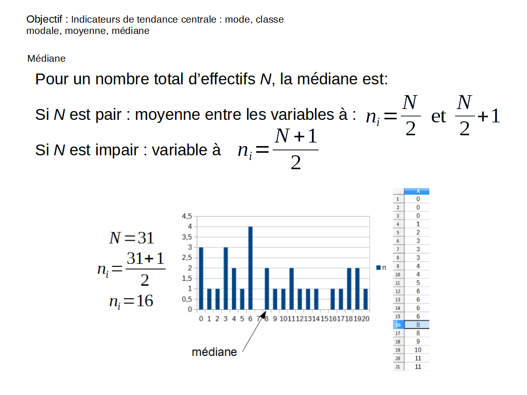 La médiane est la variable pour laquelle il y a un même nombre d’instances supérieures et inférieures.