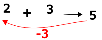Supposons que nous avons ajouté 3 à 2. Nous avons maintenant 5. La réciproque de l’opération qu’on vient de faire devrais nous permettre de revenir à 2. Cela signifie retirer 3. La réciproque de l’opération ajouter 3 est donc retirer 3.