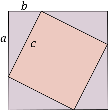 Imaginez deux carrés. Le plus petit est dans le plus grand mais penché, en sorte de former quatre triangles rectangles donc l’hypoténuse est égale au côté du plus petit des carrés.