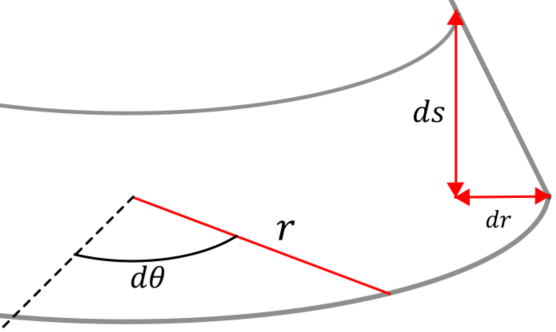 \[\text{dS}\ = \ r\ d\theta\text{dr}\]