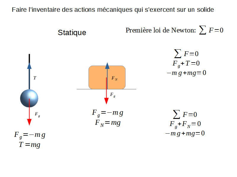 La première loi de Newton est souvent appelé « principe fondamentale de la statique ». En effet, cette li dit que pour tout corps qui n’accélère pas, la somme des forces agissant sur ce corps est égale à zéro.