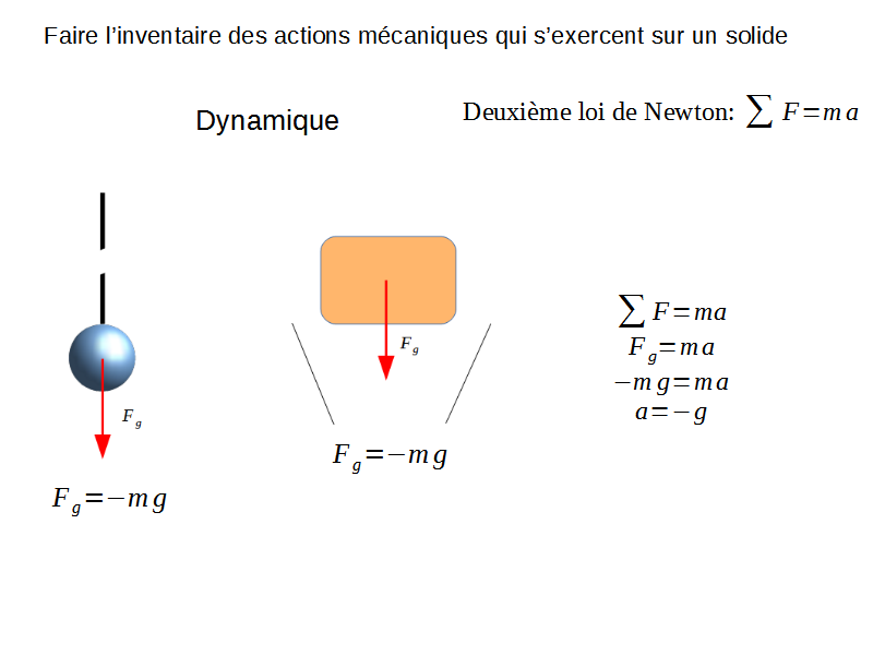 Cette loi est particulièrement utilse pour analyser la trajectoire d’un objet accélérant. Par example, on constate que, mathématiquement, tout objet tombant sur Terre tombe à la même vitesse, quelle que soit sa masse. Cela semble contredire l’expérience (pensez à une boule de pétanque qui tombe, puis une plume), mais ce n’est que parce qu’on ne pense pas toujours à d’autres forces, comme la résistance de l’air ou la poussée d’Archimède.