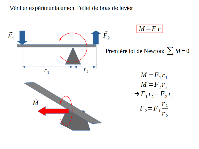 Un moment est une force appliquée à une distance d’un axe de rotation. C’est le principe du bras de levier : le moment est appliqué à la partie longue du levier, et le même moment produit une force différente (plus grande) sur la partie longue du levier.