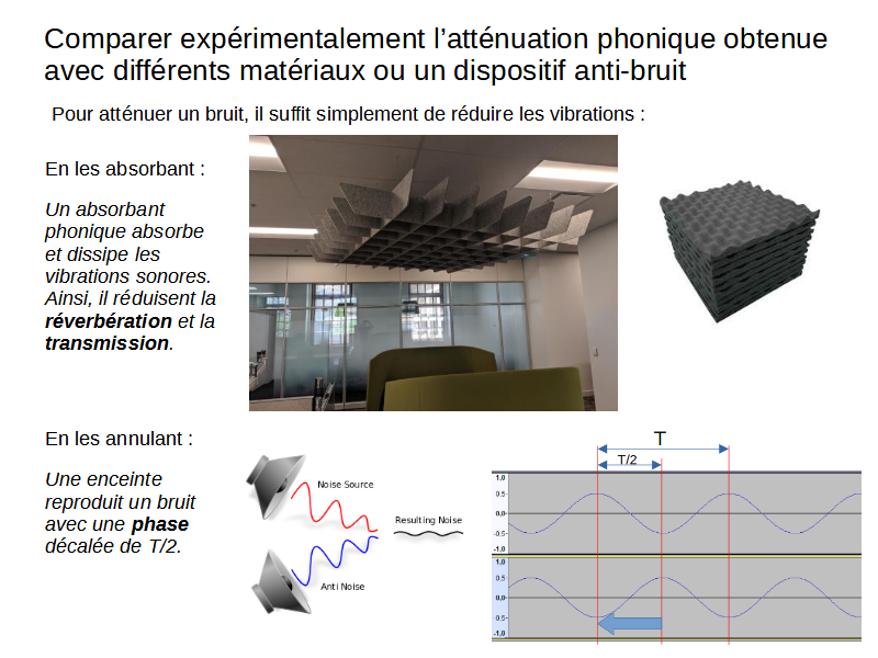 Pour atténuer les réverbérations dans une pièce, on peut utiliser des matériaux qui ont un coefficient d’absorption acoustique proche de 1.