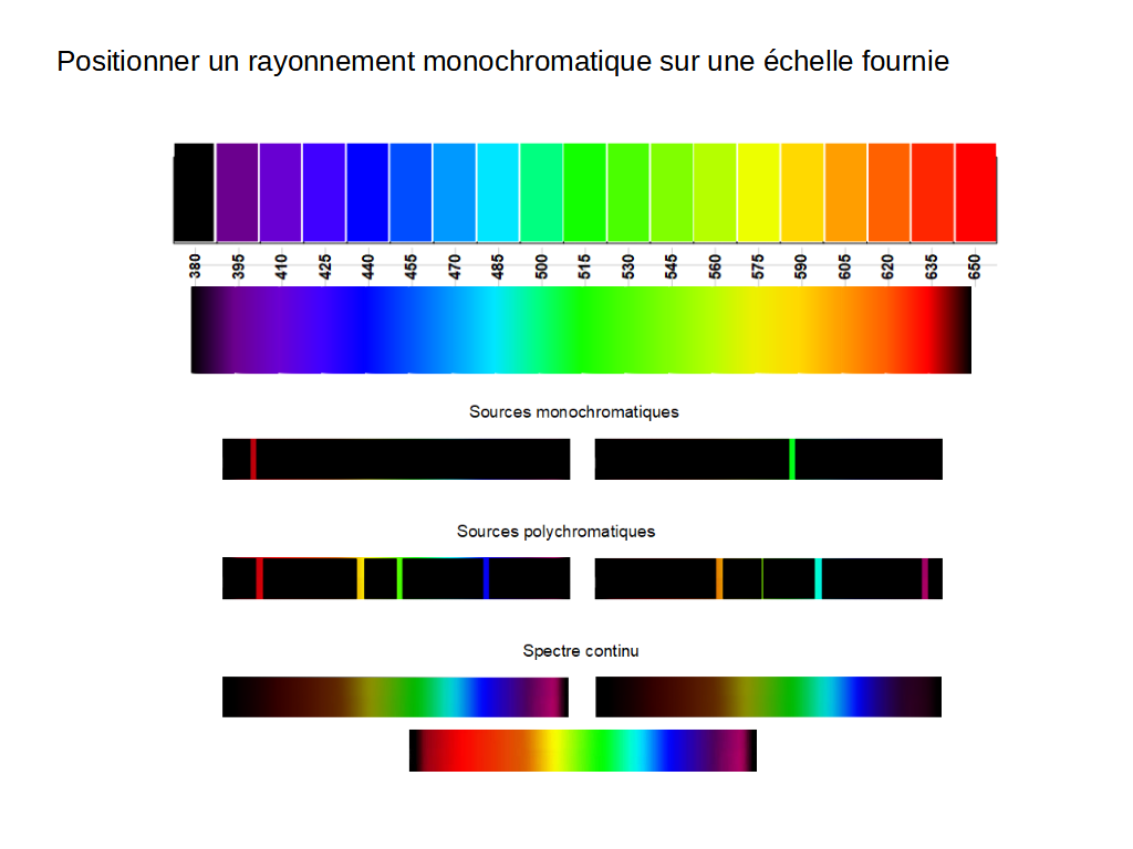 Dans le spectre visible, chaque rayonnement monochromatique correspond à une longueur d’onde en nanomètre nm.