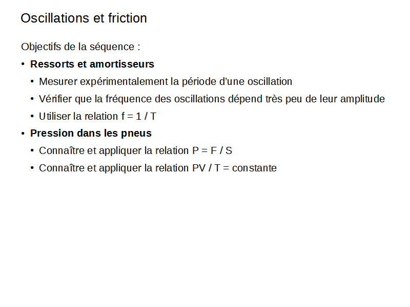 Une oscillation est un va et vient entre deux extrêmes. Les oscillations sont décrites par la loi de Hooke, mais leur dérivation est trop complexe pour aborder en cycle terminal. Au niveau BTS, un cours existe qui les explique dans le détail.