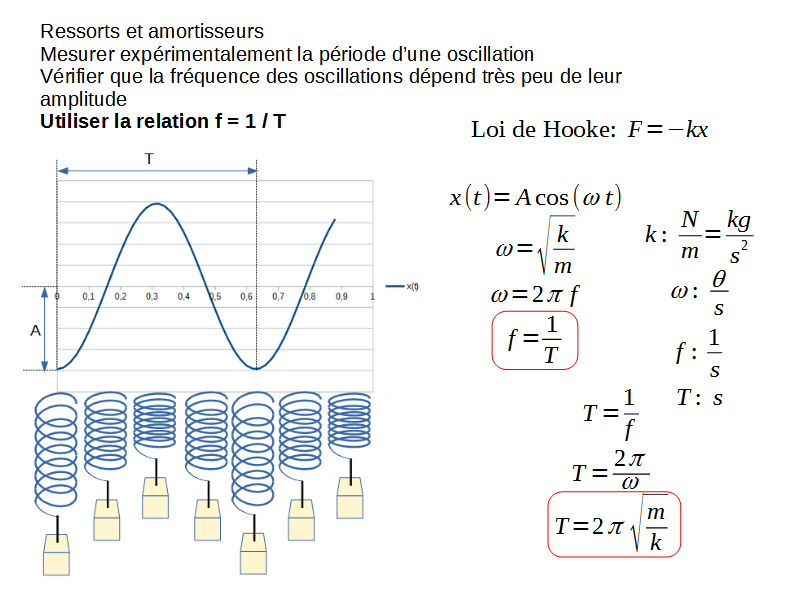 Calculer la masse requise pour obtenir une fréquence de 1 Hz avec un ressort dont la constante d’élasticité est égale à 10 N / m
