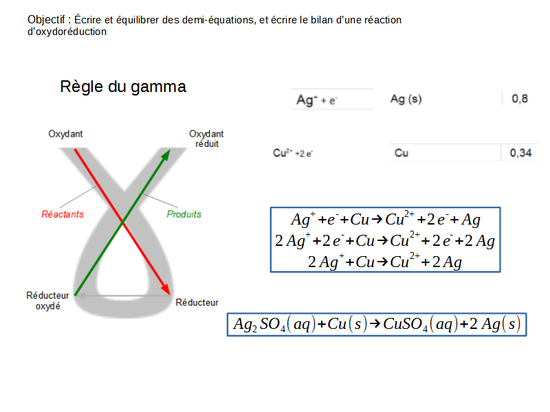 Comme il y a autant d’électrons à gauche et à droite, ils s’annulent : on obtient l’équation d’oxydoréduction.