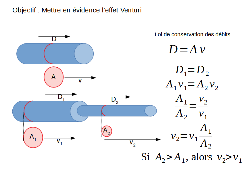 Le débit est le volume de fluide passant par une section A chaque seconde. C’est donc la vitesse d’une section de ce fluide multipliée par son aire.