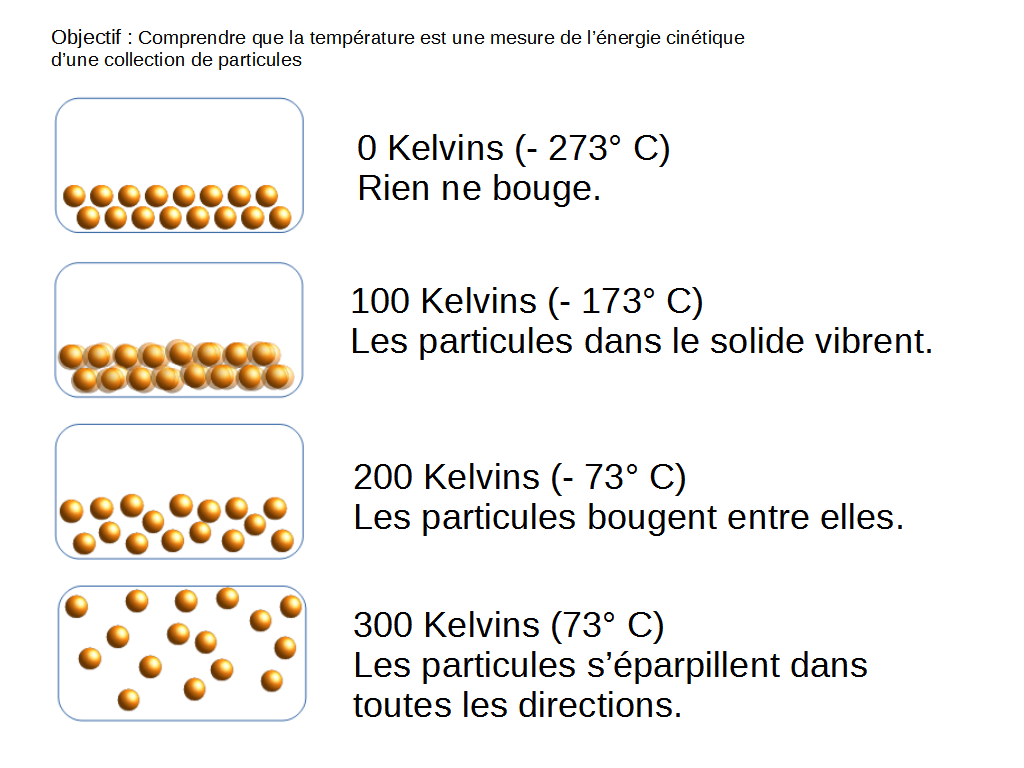Tout d’abord, on utilise en physique l’échelle Kelvin pour mesurer la température d’une substance. Cette échelle est basée sur le mouvement des particules. En effet, la température est une mesure de l’énergie cinétique des particules dans un corps : plus la température est élevée, plus les particules bougent vite. On établit alors un zéro absolu, qui est le début de l’échelle Kelvin, comme étant un état où le mouvement des particules est à zéro. Il n’existe donc pas de températures négatives dans l’échelle Kelvin.