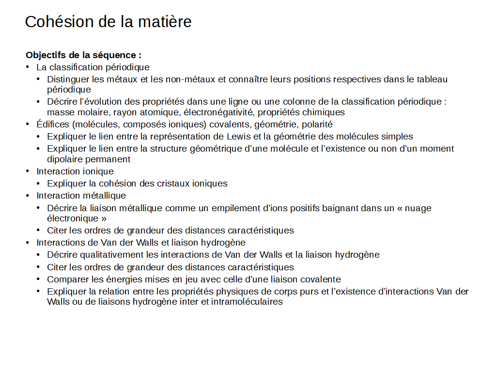 Cette séquence est un résumé des bases sur la matière d’un point de vue chimique : les éléments et les édifices qu’ils composent.