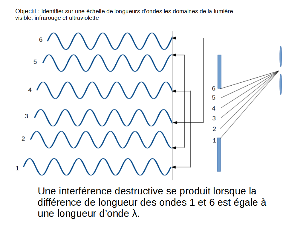 En prenant des mesures pour tout point sombre sur l’écran, il est possible de mesurer la longueur d’onde d’une lumière colorée.