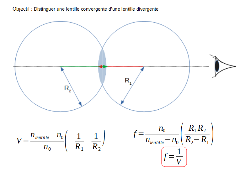 La longueur focale de la lentille, ou convergent tous les rayons, est simplement l’inverse de sa vergence.