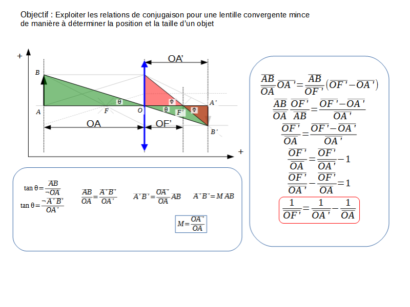 Démontrer que, si l’objet est entre le point focal gauche et la lentille, l’agrandissement est positif.