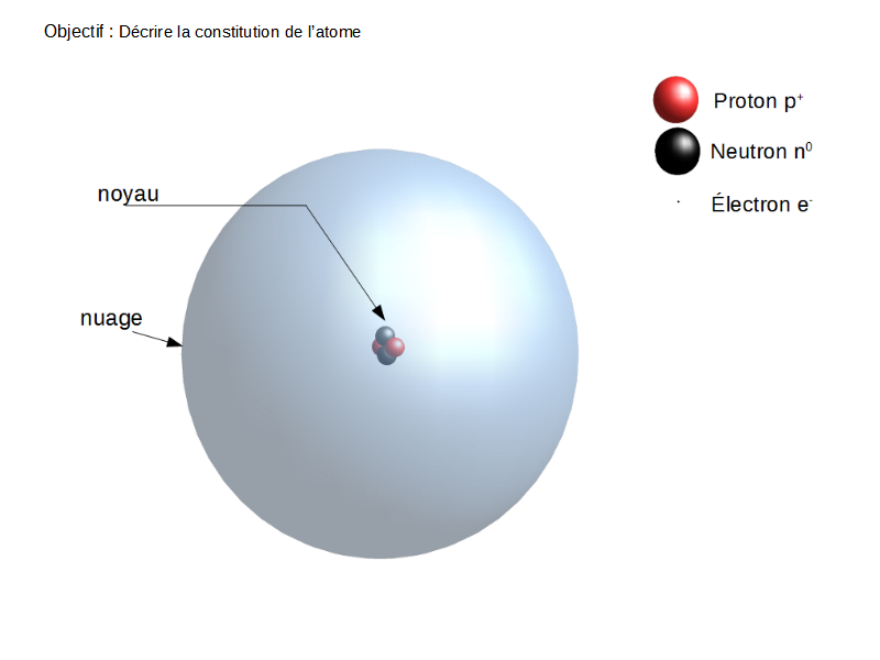 A l’extérieur du noyau, on trouve un « nuage » d’électrons de charge négative. Les électrons ont une masse 10 000 fois inférieure à celle des nucléons (ou hadrons : les protons et neutrons).