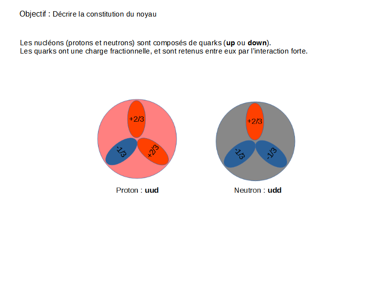 Les protons sont composés de deux up quarks, et de un down quark. Les neutrons varient par un seul quark : un up quark et deux down quarks.
